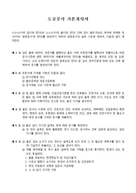 18개 조항으로 구성되어있는 도급공사 기본계약서입니다.