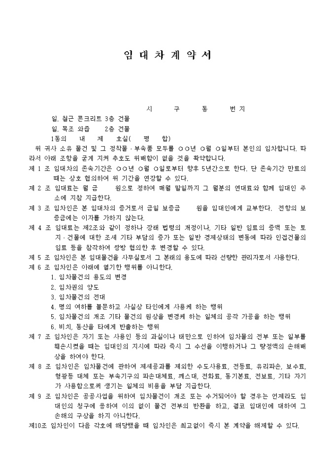 9,000원/월사무실임대차계약에 관한 내용이 기록되어있는 사무실임대차계약서 샘플입니다.