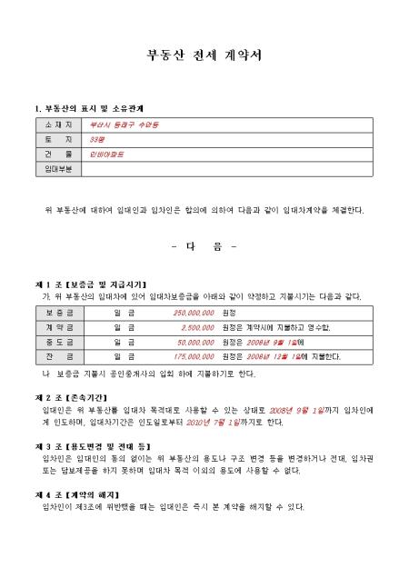 부동산 전세계약서