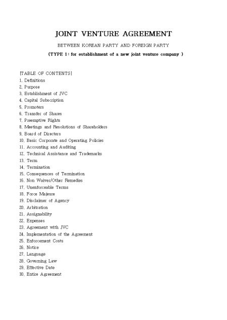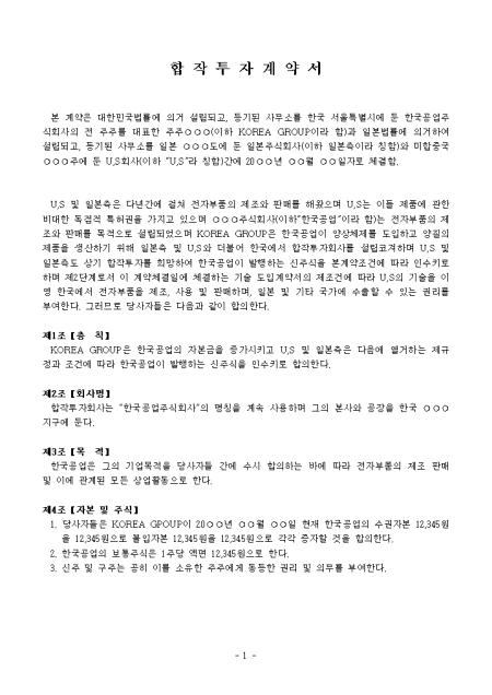 한국측 당사자와 외국 당사자간의 합작투자계약서